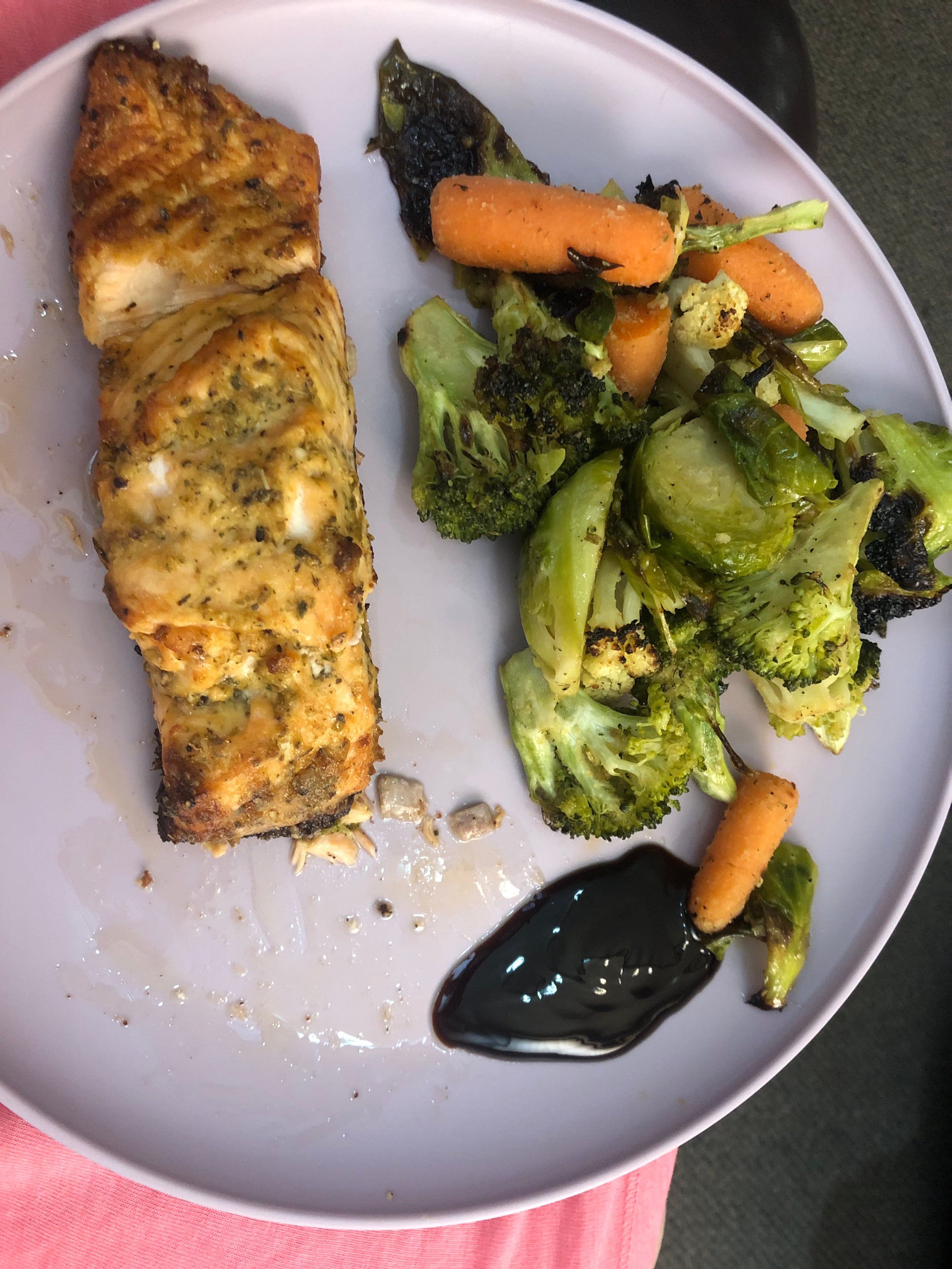 Tried my hand at meal prep and I must say it went well. 4 plates with air fire salmon and 4 plates with baked chicken. Sides are quinoa or brown rice and geeen beans. Love going into the kitchen for dinner and the meal is already made!